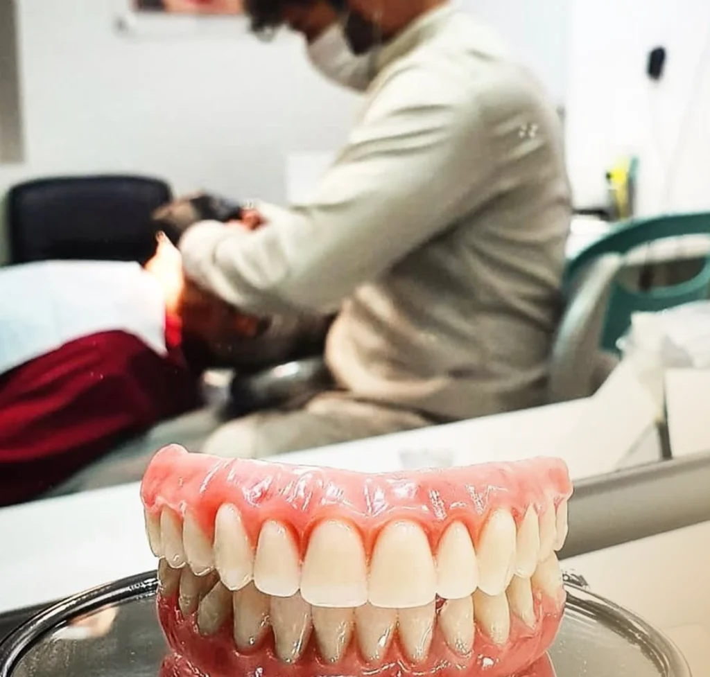 Renovação de próteses fixas instaladas há anos, devolvendo conforto, estética e funcionalidade, muitas vezes sem necessidade de nova cirurgia.